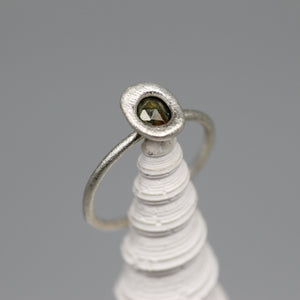 Dark Green Sapphire Sculpted Stacking Ring in Sterling Silver