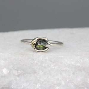 Single Claw Molten Set Sapphire Ring in Sterling Silver with 18ct Gold Detail