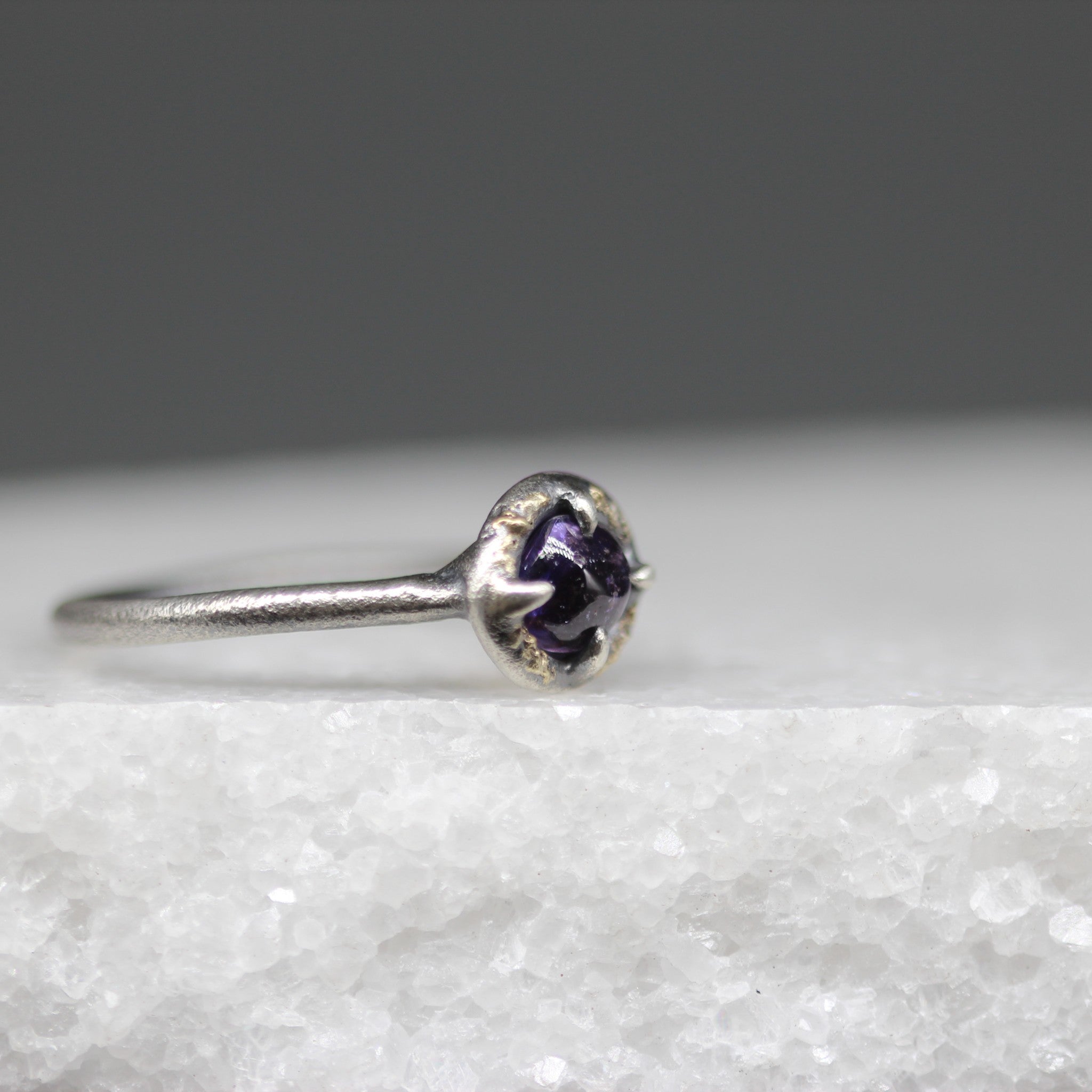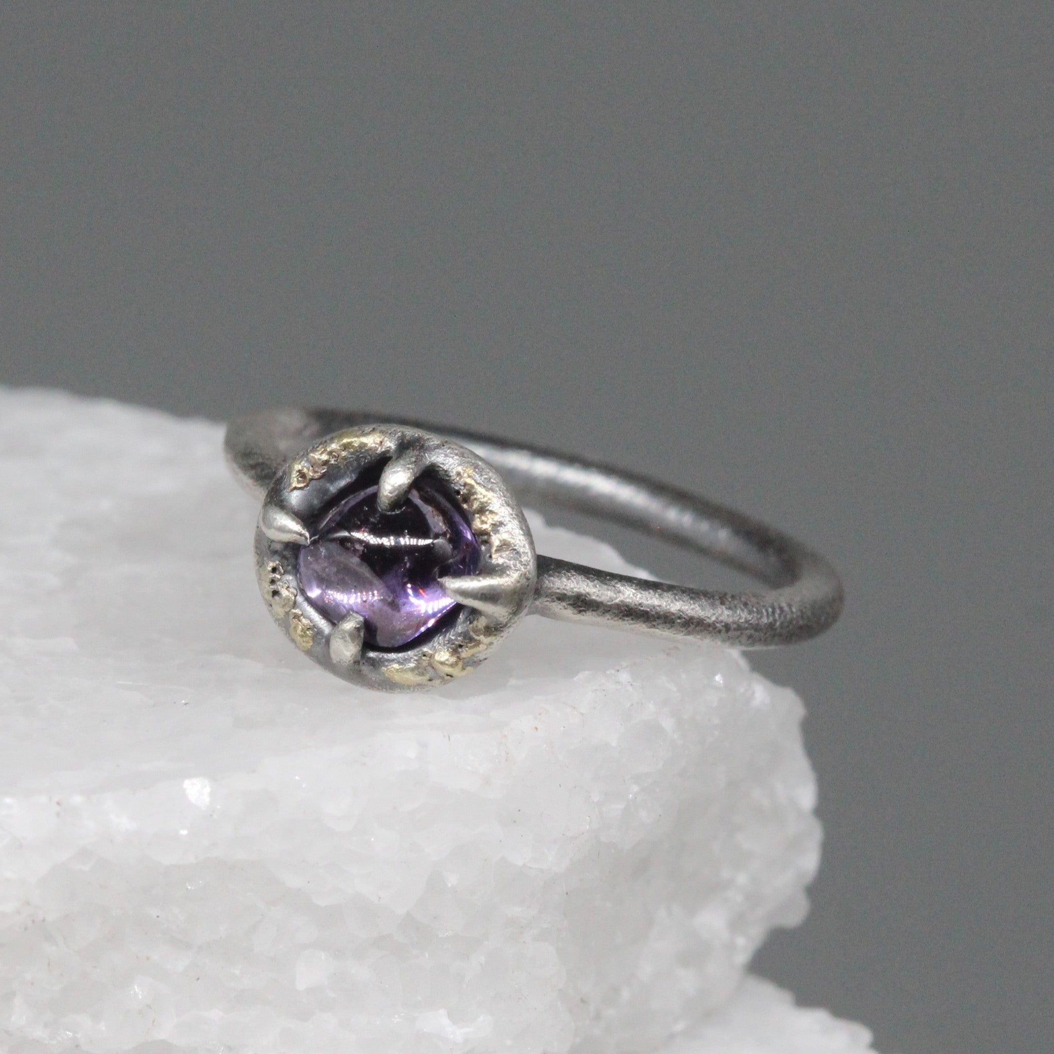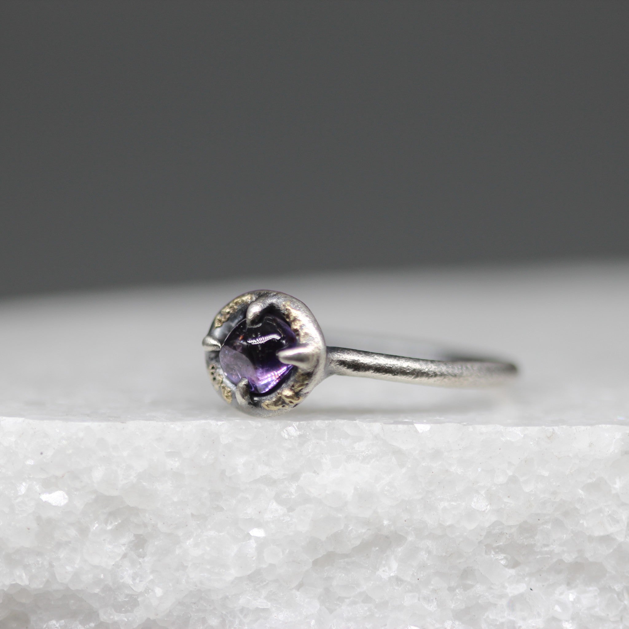 Materials: Sterling silver, 18ct yellow gold, purple sapphire (hand cut and polished in Sri Lanka).