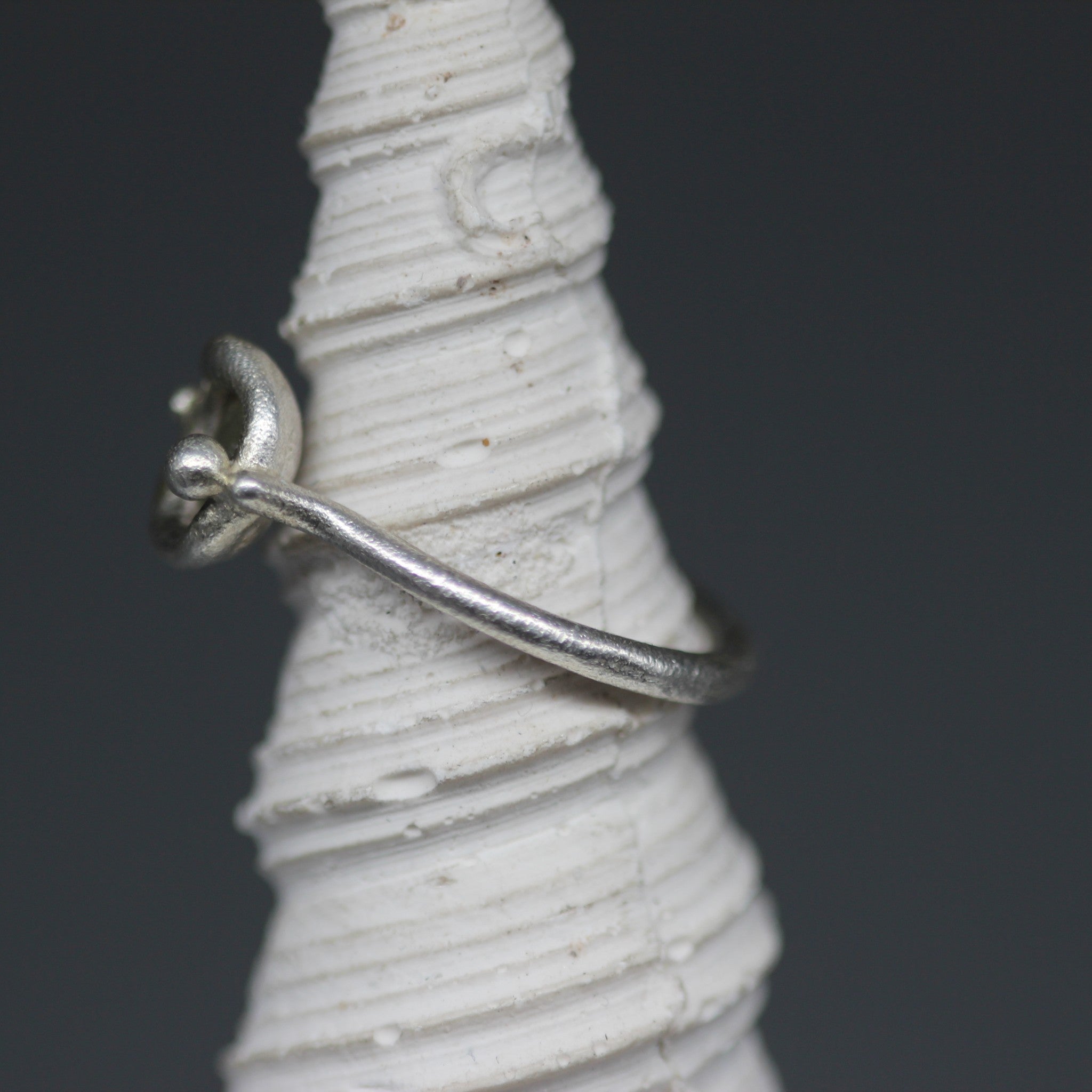 Rose cut diamond ring in molten sterling silver with sculptural horseshoe-shaped shank, handcrafted in London by Tamara Gomez.